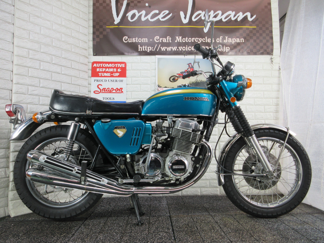 CB750Kシリーズ 砂型 K0 フレーム番号は1000番台のエンジン番号マッチング。砂型クランクケースですが修復歴のない個体で希少です。色はキャンディーブルーを忠実に再現し、大変キレイです。部品は当時の砂型メーター、DID丸リム(刻印あり)、段付きフォーク、細巻きリアショック、HMパテントミラー、シワタンク、段付きブレーキローター、8番ボルトなどできる限り当時のオリジナル部品を使用。無番マフラーとシートは闇矢屋製。初期型特徴の左ホーンフレーム、キャブレターはショートチョークレバーです。